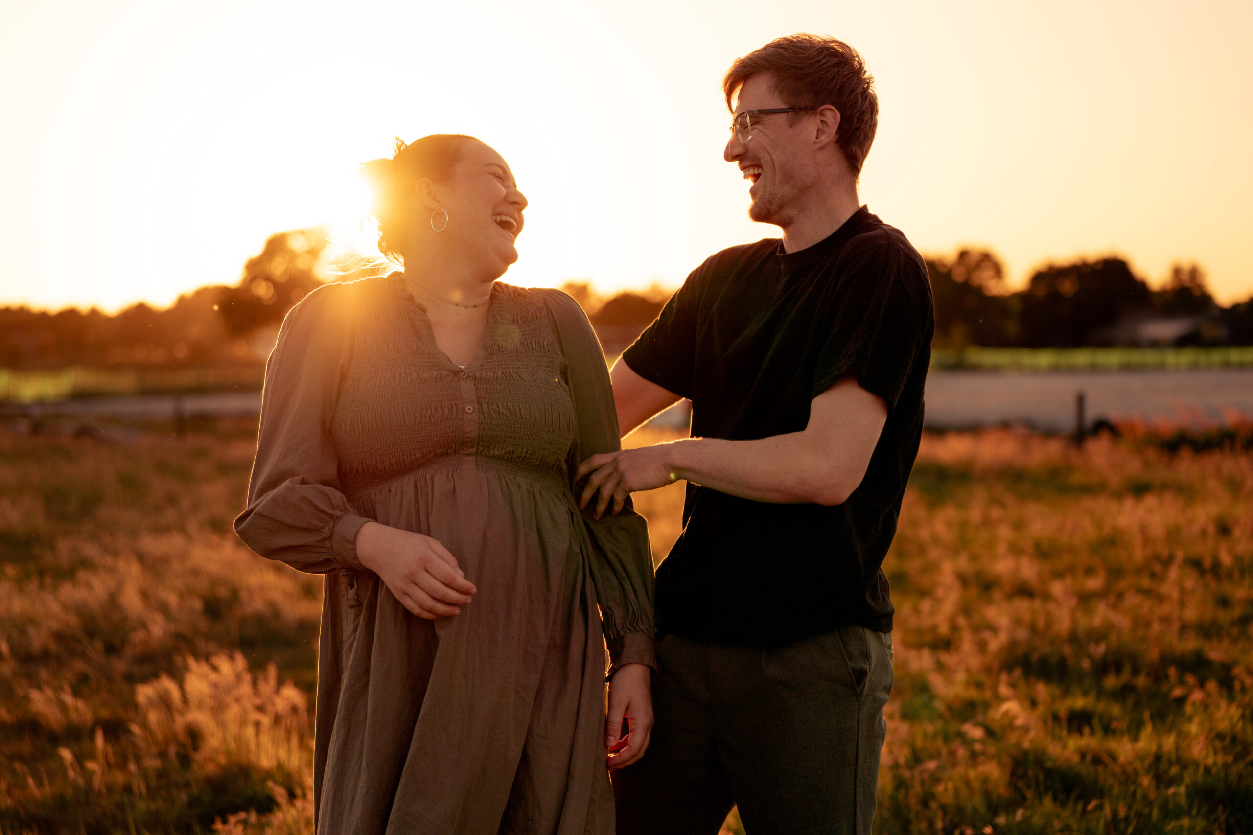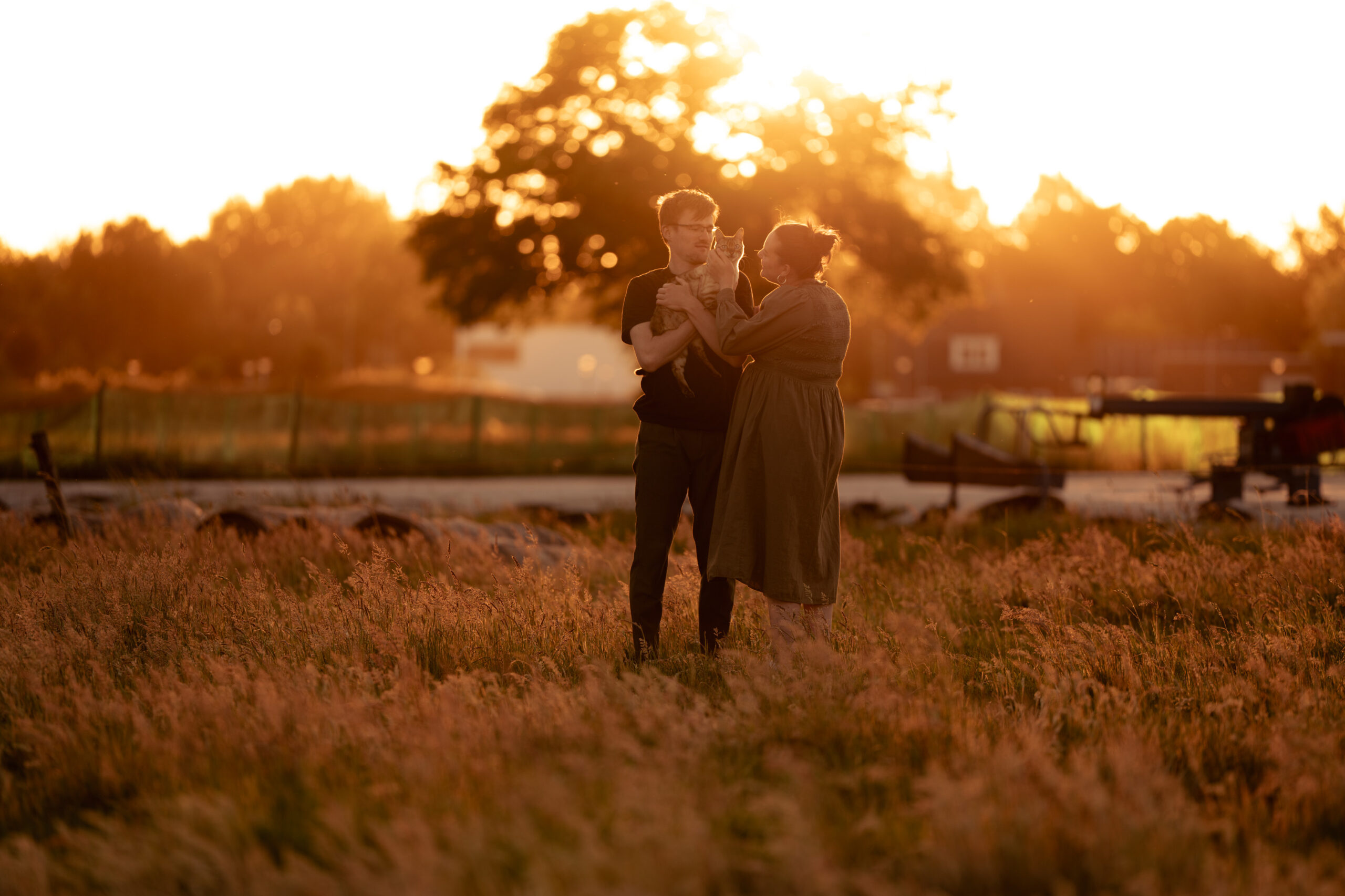 Deze shoot was fijn om te doen. Het licht van de ondergaande zon was prachtig, de dame was hoogzwanger, ze hadden een kat die gezellig met hen meeliep en ze woonden ook nog tussen de weilanden. Dat zorgde voor een warme, dromerige loveshoot. Door een lange telelens en flink tegenlicht zag je de pollen door de lucht dwarrelen… Zo zoet, je tanden vallen er bijna van uit. Soms is zoet gewoon precies wat je nodig hebt.