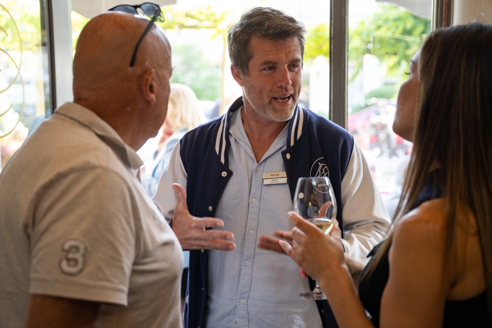 Ik vind tegenlicht over het algemeen heel mooi. Het zijn de moeilijkste omstandigheden voor digitale camera’s, maar als het dynamisch bereik van de sensor het toelaat, kun je nog heel veel terughalen in die donkere schaduwpartijen. Bij deze fotoklus heb ik geprobeerd dat tegenlicht te vangen om een zomerse uitstraling aan het event te geven. Een paar biertjes later kwamen de onderonsjes en het schatergelach.