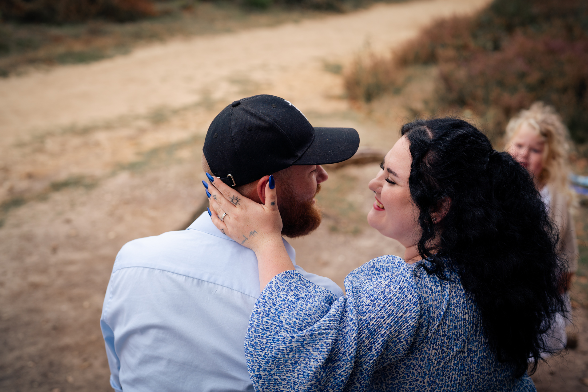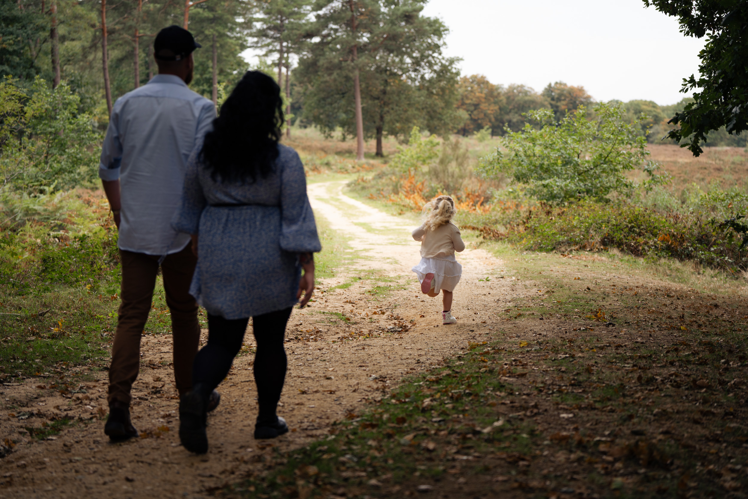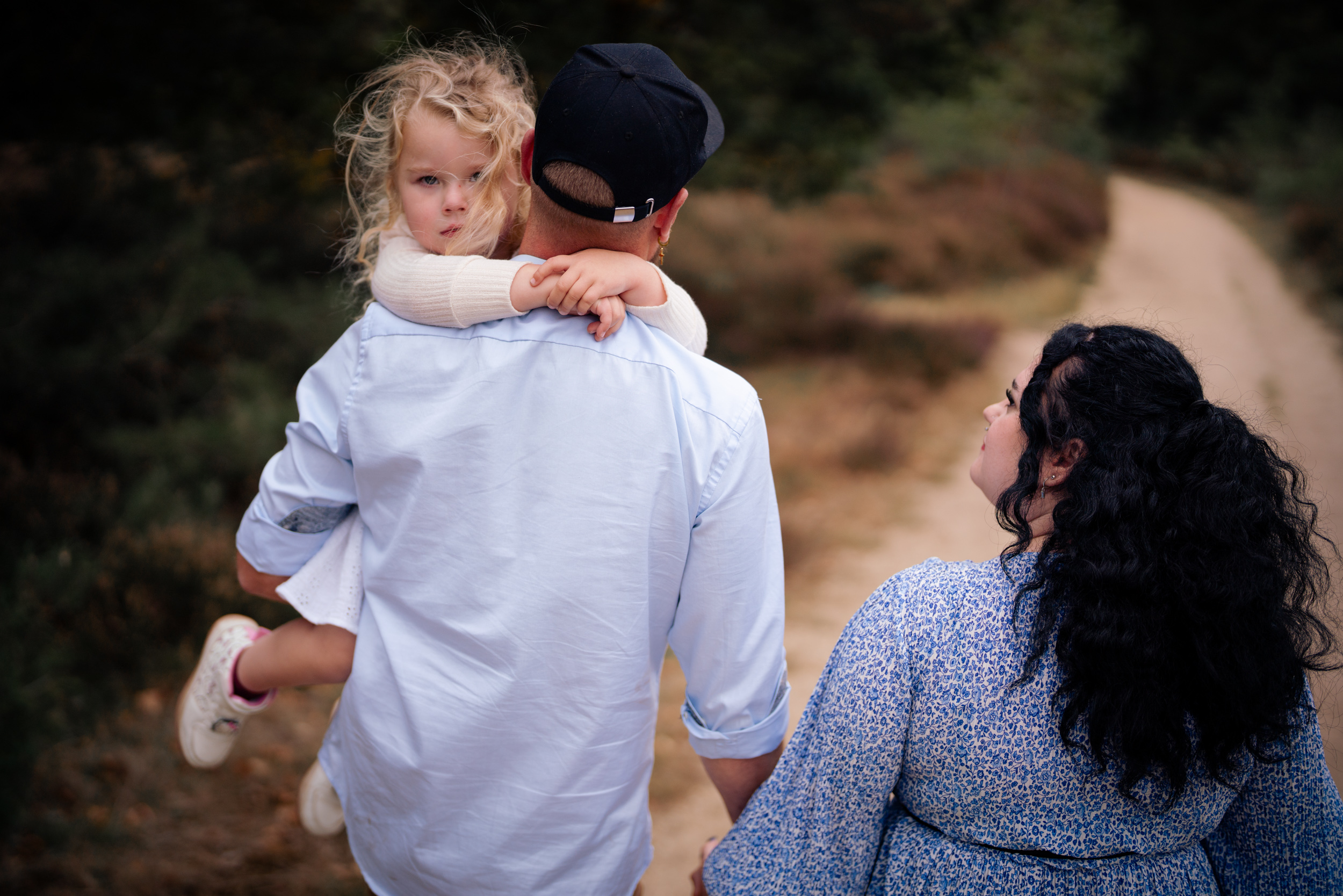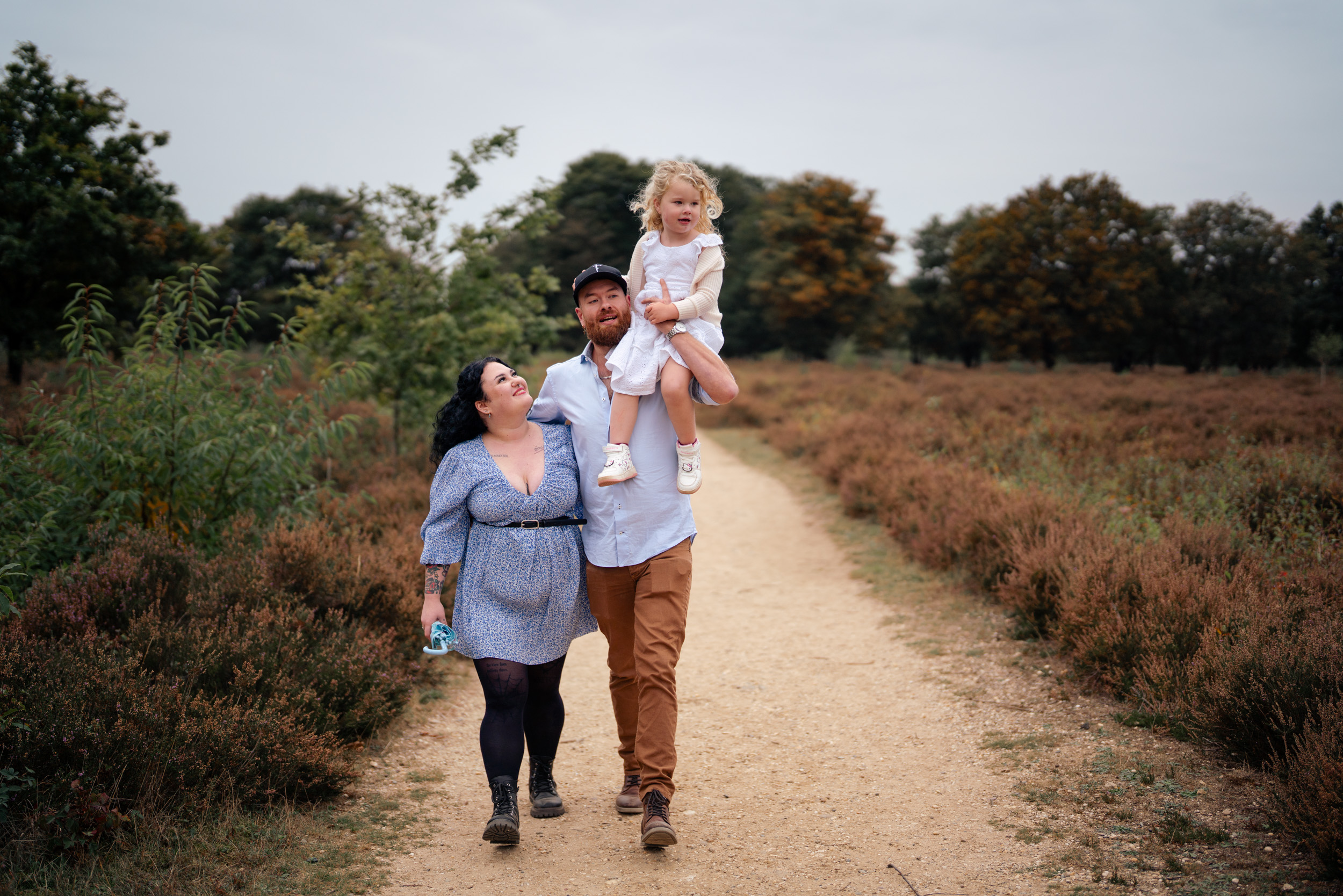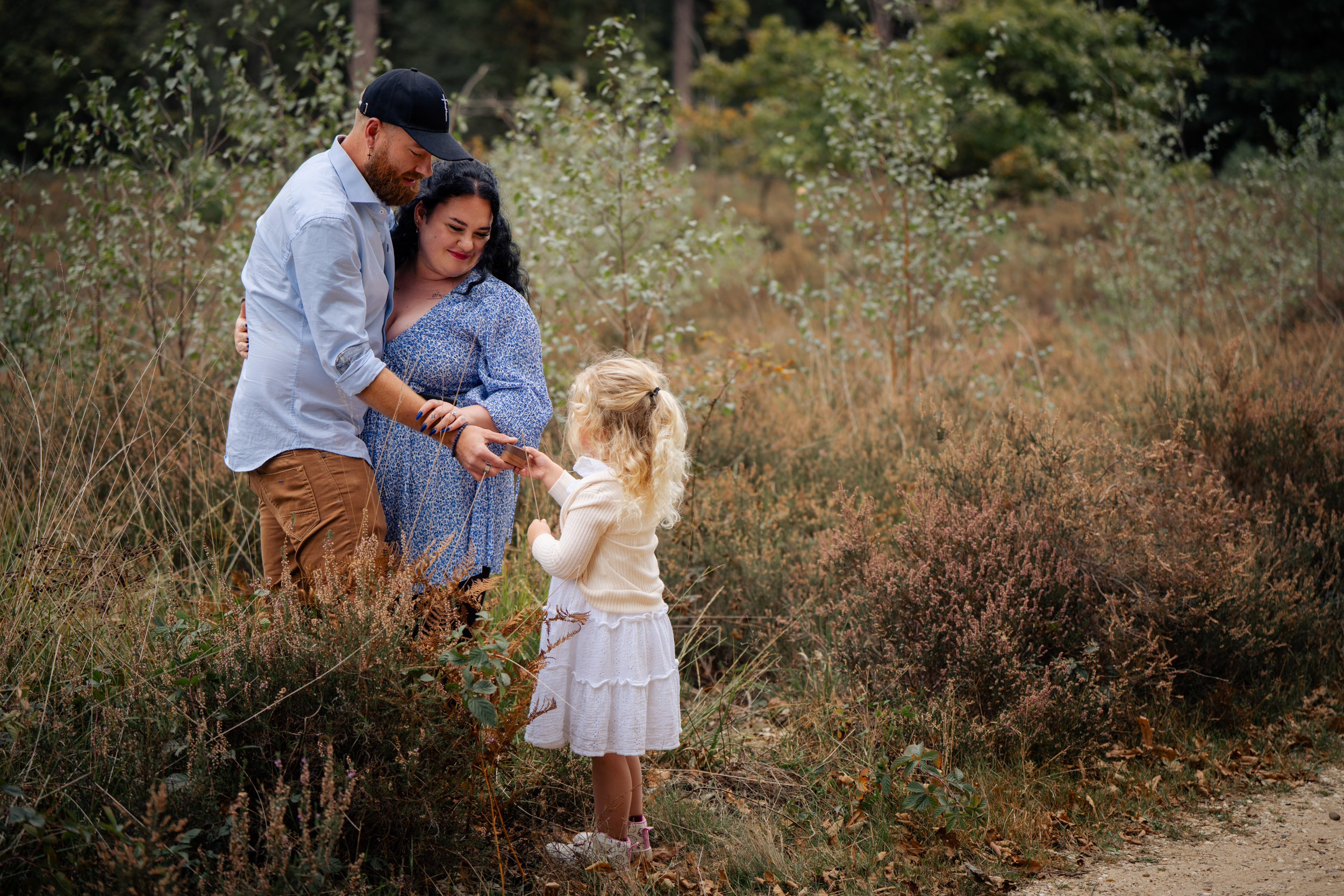 Dit stel wilde samen met hun dochter graag een familieshoot op de heide. Het weer klaarde gelukkig wat op en hier en daar liet zelfs de zon zich even zien. Prima omstandigheden voor een speelse fotoshoot.