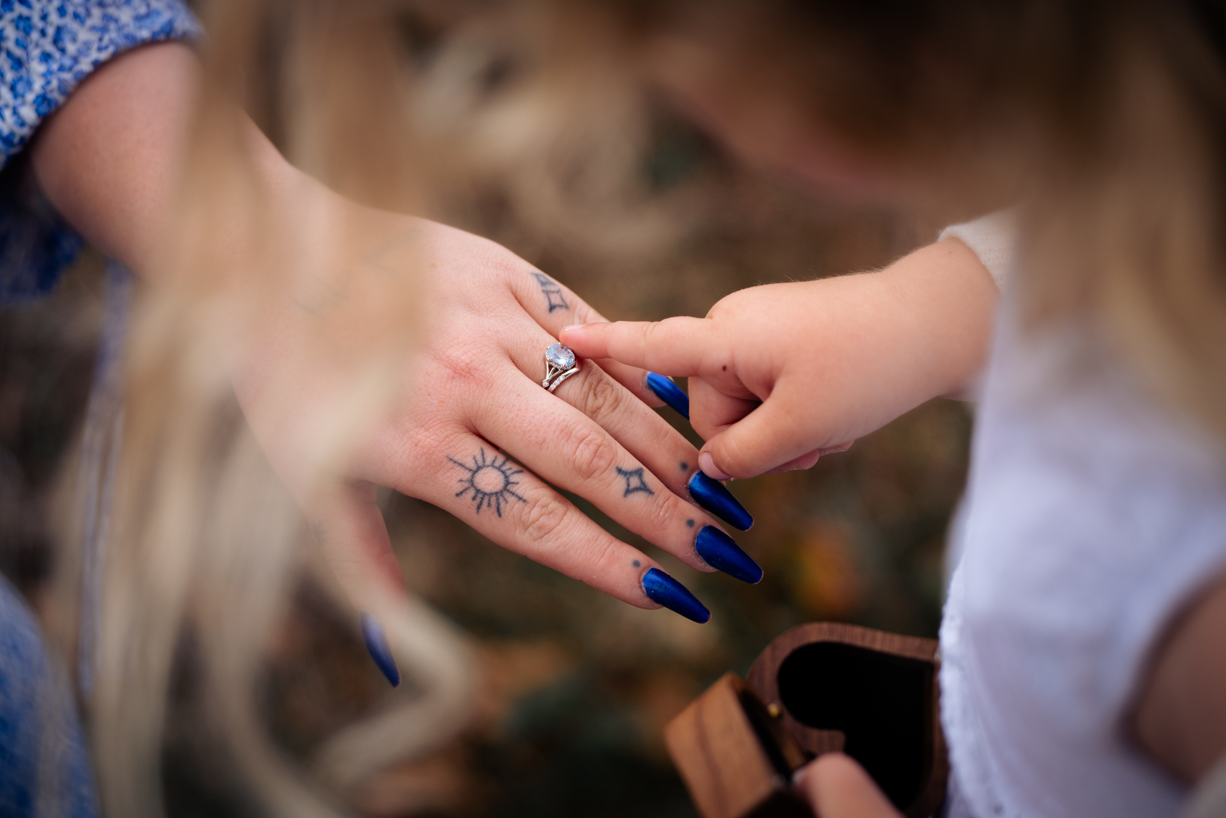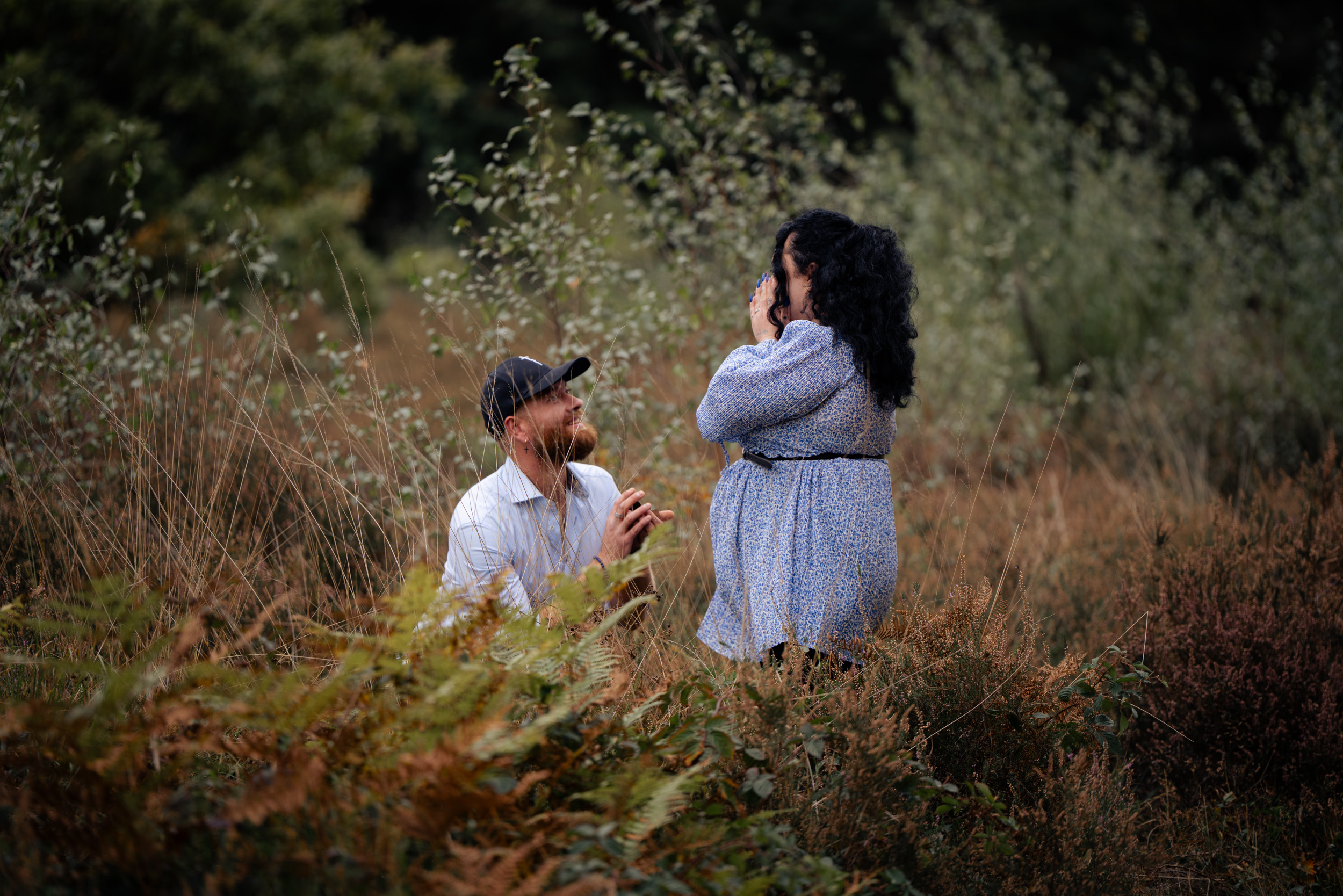 Wat zowel de dochter als de vriendin niet wisten, was dat er ondertussen een aanzoek in voorbereiding was toen de vriend mij benaderde. Gelukkig was hij slim genoeg om mij mee te nemen in het complot. Het was even afwachten op het juiste moment en toen ging hij daar, midden op de heide, op zijn knie. De dochter snapte nog niet helemaal wat er gebeurde. De vriendin begreep het overduidelijk wel.
