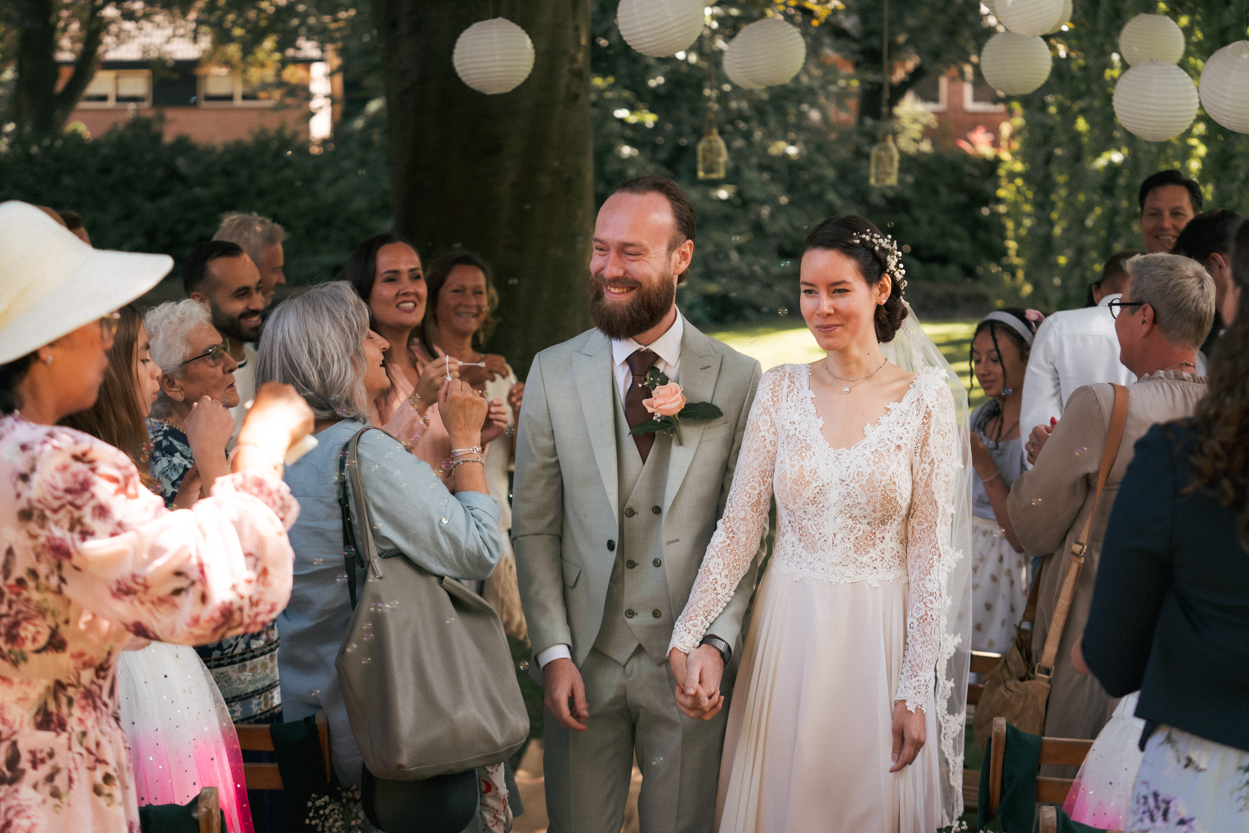 Dan is het tijd voor jullie grote dag. Ik ben super gedreven, maar tegelijkertijd blijf ik graag op de achtergrond. Soms moet ik even rennen om dat perfecte shot te pakken, want elk moment gebeurt in principe maar één keer. Hoe minder jullie en de gasten met mij bezig zijn, hoe beter. Zo blijft alles lekker natuurlijk en spontaan.